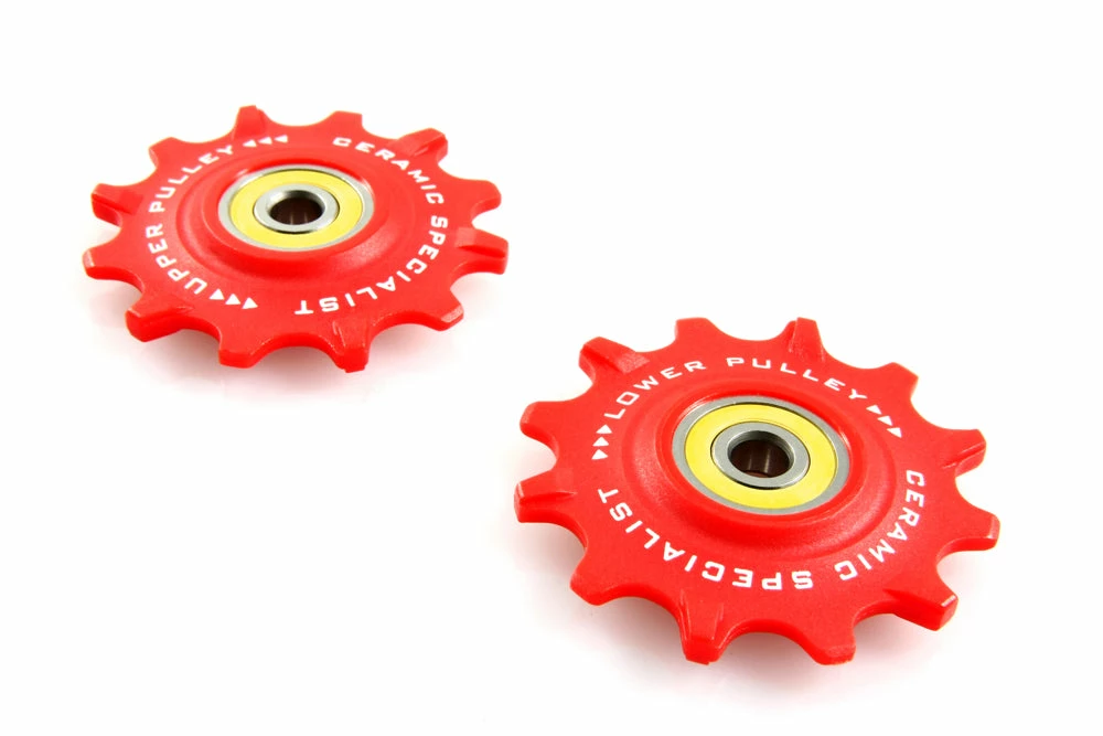 Galets de dérailleur 12 dents / inférieur 12 dents (compatible SRAM E-Tap AXS 12s) de Tripeak avec roulement céramique TPiPEAK pour une fluidité améliorée. Ensemble en composite pour obtenir un ensemble léger et rigide.