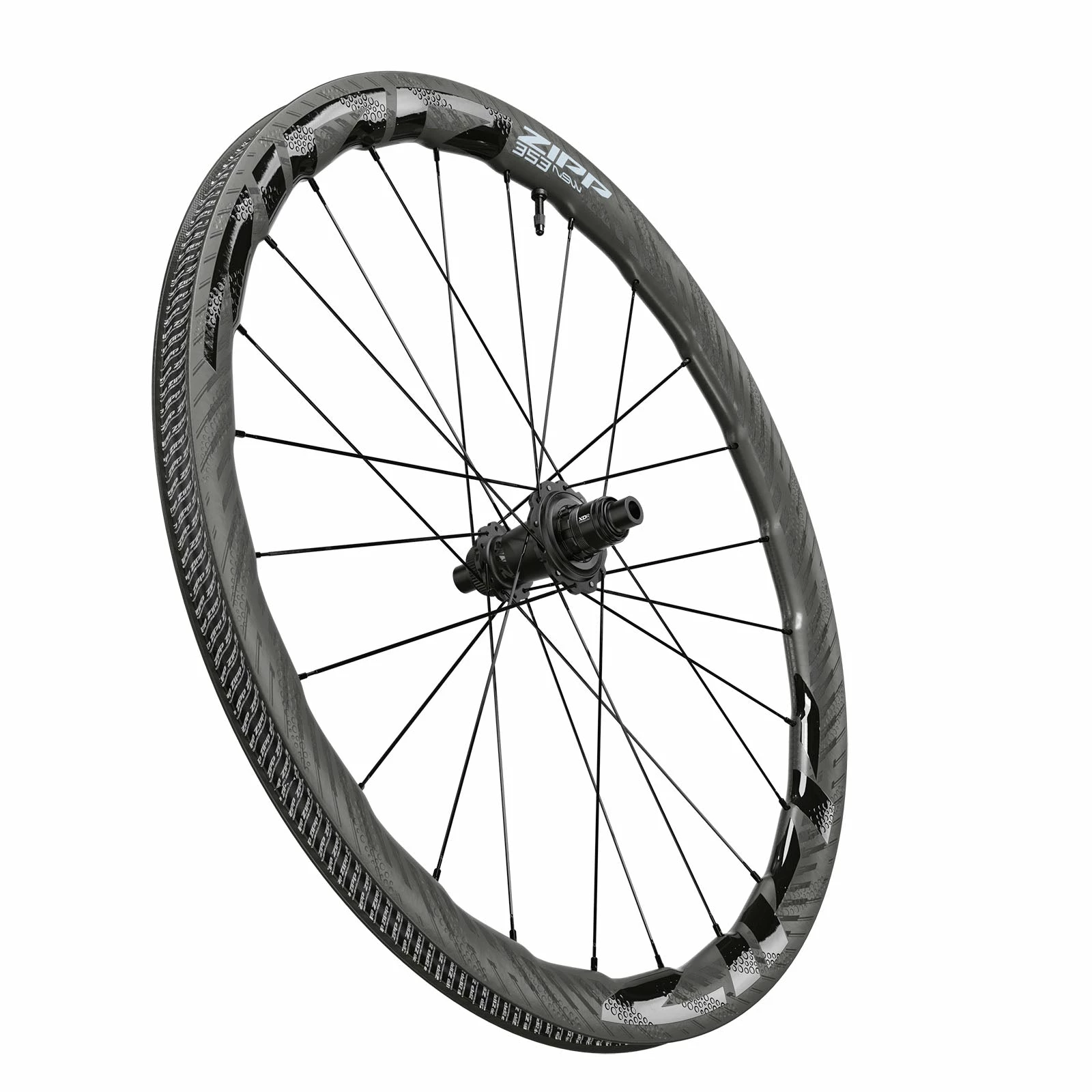 La ZIPP 353 NSW est une roue haut de gamme en carbone pour frein à disque et montage Tubeless. Bénéficiant des toutes dernières technologies de la marque, la paire affiche un poids incroyable de seulement 1255g. Avec sa forme de jante ondulée de 45 mm de hauteur, la 353 NSW permet de rouler vite sur tous les terrains grâce à une efficacité aérodynamique exceptionnelle